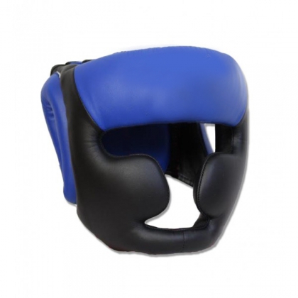 Genuine cowhide leather outside for durability with soft PU inside for comfort. Hard EVA padding outside with soft foam padding inside. Chin features the same with EVA padding around ears. Leather strap on top, enclosed with velcro closure on the back. Also available in buffalo leather. Size: S, M, L, X